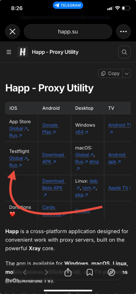 1. Переходите в репозиторий разработчика Happ https://www.happ.su.