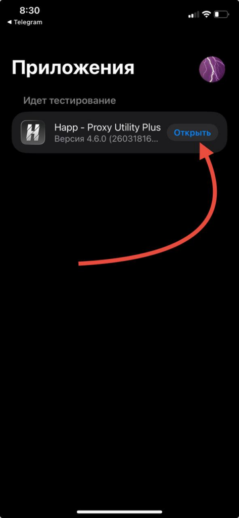 8. Откройте Happ в TestFlight.