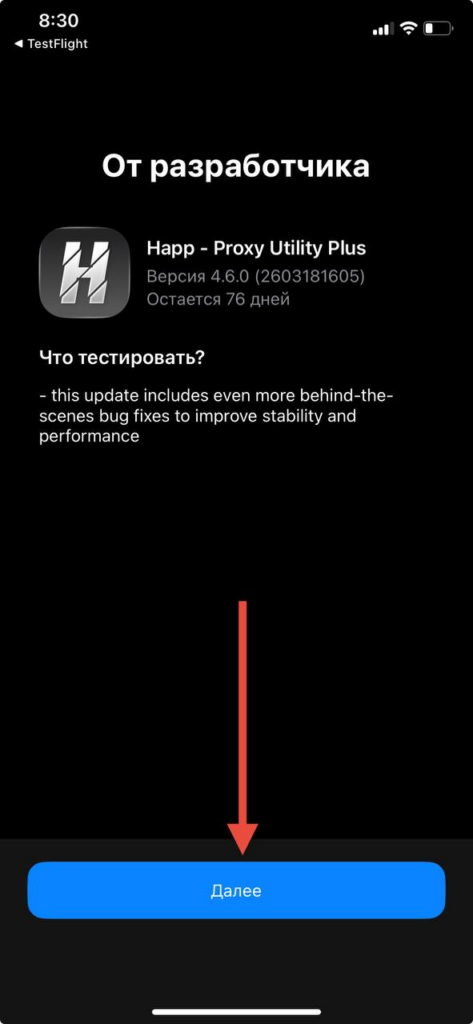 7. Установите Happ в TestFlight.