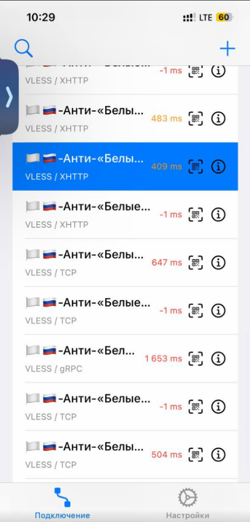 Далее, попробуйте туннели с наименьшим значением задержки (но не там где -1 ms), обычно они оказываются рабочими. Но даже если значения задержки высокие и отмечены красным цветом, попробуйте их всё-равно, если нет других вариантов. Зачастую помогают туннели из категории Анти белые списки.