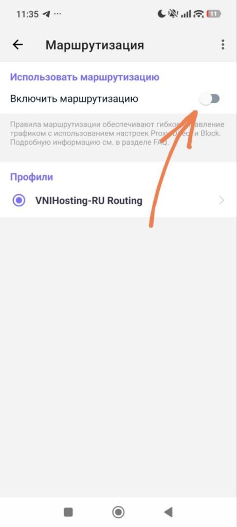 Включать и выключать маршрутизацию можно при помощи тумблера в разделе «Настройки» — «Маршрутизация»