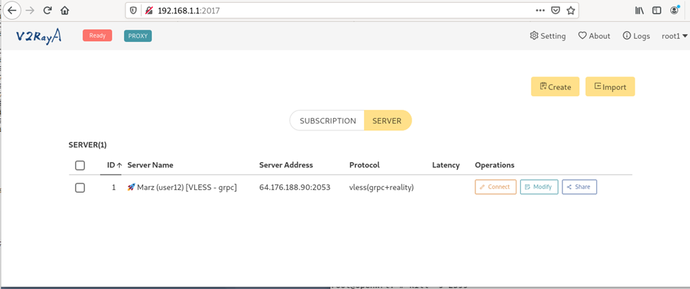 - Переходим в панель управления v2rayA вашего роутера, например http://192.168.1.1:2017 (У МЕНЯ НЕ ПОДКЛЮЧАЕТСЯ К ЭТОМУ САЙТУ)