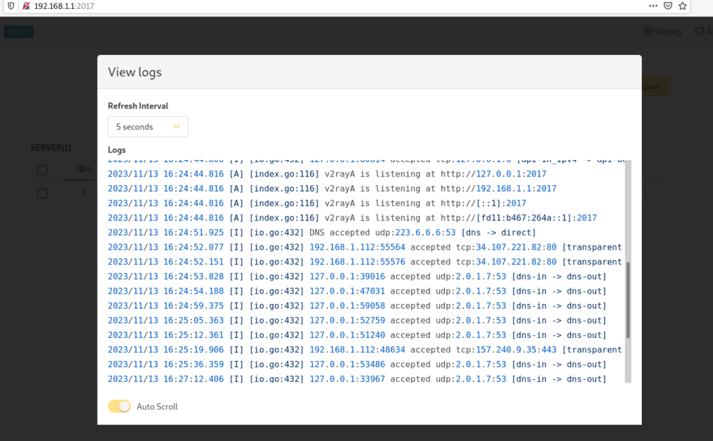 Проверить работу можно в т.ч. по логам v2rayA: